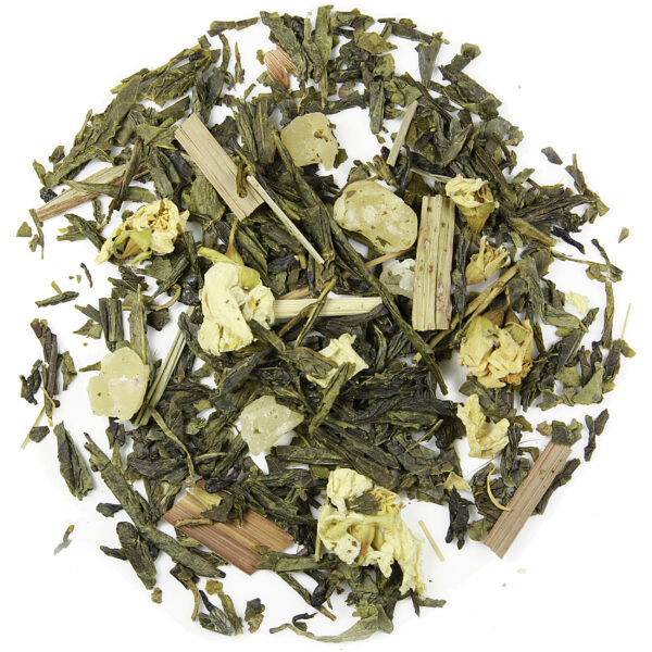 Ta mieszanka zawiera w sobie wszystko, czego może sobie zażyczyć miłośnik zielonych herbat z dodatkami.Jej podstawą jest delikatna zielona Sencha, w której suszu skryto kandyzowaną wiśnię, ananasa, oraz kwiat jaśminu. Pierwszy z tych składników przydaje naparowi nieco kwaśnych nut, drugi czyni go przyjemnie słodkim, zaś trzeci finezyjnie podkreśla aromat całej kompozycji. W rezultacie każdy łyk gotowego naparu dostarcza nam szeregu wrażeń - szczególnie wrażeń smakowych.Kolejne składniki wyczuwalne są w różnych częściach ust i języka, zaś po opróżnieniu filiżanki długo jeszcze cieszy pijącego przyjemny posmak ananasa i jaśminu, osadzający się na głęboko na podniebieniu. Warto wspomnieć także o samym suszu. Jest on bowiem bardzo aromatyczny, z dominującymi akcentami wiśniowymi i ananasowymi. Obficie uzupełniające mieszankę jaśminowe pąki zwracają uwagę nieco subtelniej, ale wprawny miłośnik herbaty bez trudu wyczuje także ich obecność.Tabela wartości odżywczych [kliknij]