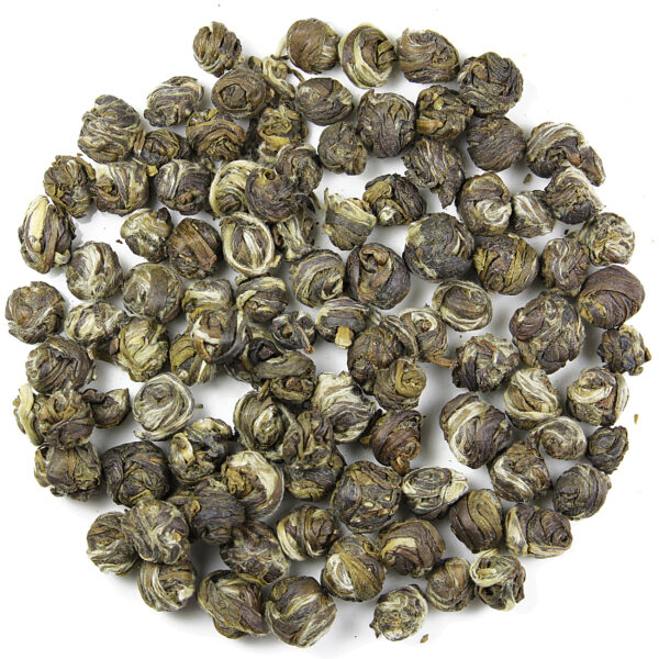 Long Zhu to szlachetna zielona herbata uprawiana na wysokogórskich plantacjach chińskiej prowincji Yunnan. Jej ręcznie zawijane pączki poprzetykane herbacianymi tipsami (świadczącymi o wysokiej jakości suszu) rozwijają się z wolna w trakcie parzenia, rodząc niezwykle wyważony napój.Łagodny posmak jaśminu nie dominuje tu w przeciwieństwie do większości odmian tego typu nad akcentami herbacianymi, a jedynie podkreśla lekki, kwiatowy smak zielonej herbaty. Napar ten zadowoli poszukujących suszu pośredniego między odmianą białą i zieloną. Łączy on bowiem słodki posmak i przyjemny aromat tej pierwszej, z wyrazistym charakterem i łagodną goryczką drugiej.
