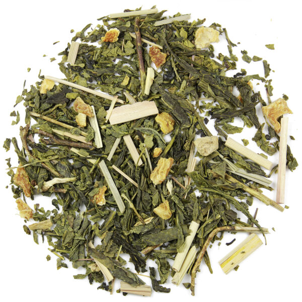 Ginger & Lemon to zielona herbata Sencha o łagodnym ziołowym aromacie z wyczuwalną nutką cytrynową.Po zaparzeniu otrzymujemy napar o barwie jasno-słomkowej i delikatnym imbirowym zapachu. Herbata ma bardzo delikatny, lekki smak wzmocniony łagodną, klasyczną dla Senchy goryczką.Doskonała z kilkoma kroplami świeżej cytryny, idealnie orzeźwia i pobudza.Dobra również na zimno dlatego bardzo polecamy parzyć ją jako cold brew.Tabela wartości odżywczych [kliknij]