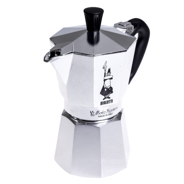 Kawiarka Moka Express 6tz to jeden z najbardziej klasycznych i najpopularniejszych modeli firmy Bialetti – światowego lidera na rynku producentów kawiarek.Klasyczny design, aluminiowe wykonanie, praktyczna rączka chroniąca przed oparzeniem zapewniają estetyczny wygląd oraz najwyższą wygodę użytkowania.Zasada działania kawiarki jest dość prosta. Gorąca woda wytwarza parę wodną, która pod wysokim ciśnieniem wypycha wodę ku górze, a więc ku sitku w którym umieszczona jest nasza kawa. W dalszej części procesu kawa, przechodząc wyżej, gromadzi się w górnym zbiorniczku. Znakiem, że parzenie zostało zakończone jest para wydobywająca się z dolnego pojemniczka. Zalet kawy przygotowywanej w ten sposób nie trzeba podkreślać. Gotowy napar jest aromatyczny, intensywny w smaku i pozbawiony fusów. Wiele narodów świata nie wyobraża sobie innej metody na przygotowanie kawy.Przy jej pomocy możemy zaparzyć jednocześnie aż 6 filiżanek espresso! Pojemność: 300 ml.Kawiarkę należy myć ręcznie, aby mogła służyć nam długie lata. Może być wykorzystywana zarówno na kuchenkach gazowych jak i elektrycznych.