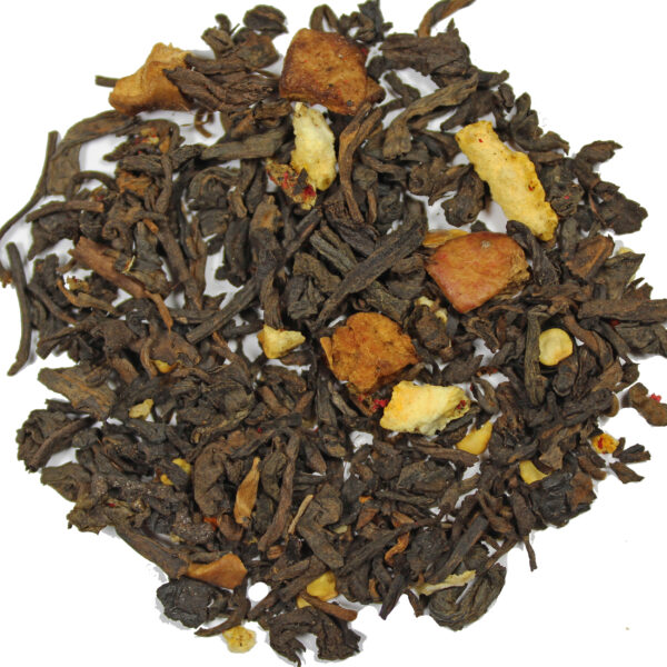 Herbata Pu-erh to jedna z najpopularniejszych herbat na świecie. Swoją sławę zawdzięcza właściwościom odchudzającym.Jedna filiżanka czerwonej herbaty dziennie ma zbawienny wpływ na działanie układu pokarmowego.Tą niezwykłą herbatę połączyliśmy z liofilizowaną pomarańczą i chilli. Taki duet sprawi, że na podniebieniu poczujemy delikatnie słodki smak południowych pomarańczy przeplatany pikanterią ostrej papryczki. W mieszance znajdziemy również słodkie jabłka oraz prozdrowotne jagody goji.Całość sprawia, że herbata nabiera egzotycznego, niebanalnego smaku.