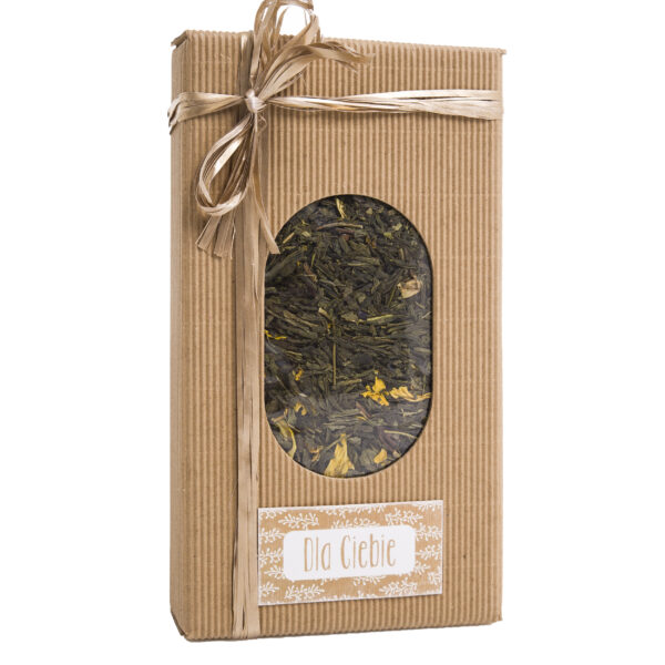 Podarunek stworzony na wzór tradycyjnych czekoladek z okienkiem. W specjalnie zaprojektowanym pudełku znajduje się 50 gramów herbaty Eliksir szczęścia. Na opakowaniu, które wykonane jest z eleganckiej tektury falistej dołączony został bilecik "dla Ciebie". Prezent idealny jako dodatek do pozostałych, lub jako samodzielny niezobowiązujący. Prostota i elegancja połączona z pyszną herbatą.
