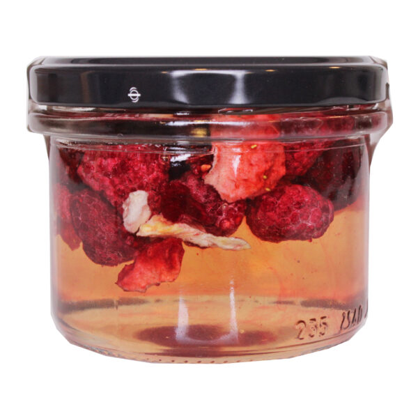 Mix owoców w miodzie to doskonały dodatek, który dzięki swoim walorom smakowym uzupełni każdy deser, herbatę a nawet piwo w letnie dni.Składa się z pysznego miodu akacjowego, który swoją słodkością otacza z każdej strony liofilizowane owoce.W środku znajdziemy duże kawałki mocno wyczuwalnych wiśni, malin, truskawek oraz ananasa. Ulega naturalnej krystalizacji. Masa netto: 230gProducent jest w trakcie zmiany etykiety. Etykieta może się różnić od tej na zdjęciu.Tabela wartości odżywczych [kliknij]