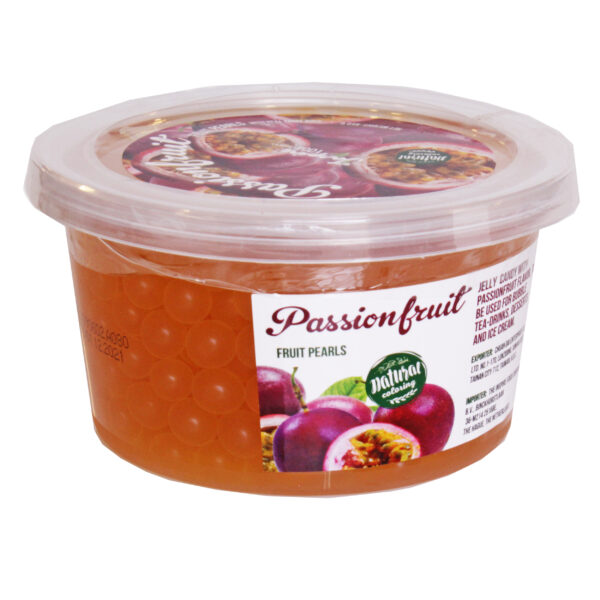 Kuleczki owocowe w formie pękających perełek do samodzielnego przygotowania bubble tea w domu. Zawierają prawdziwy sok o smaku marakui i naturalne barwniki.Świetnie sprawdzą się jako podstawowy dodatek do bubble tea, a także do koktajli, lodów czy deserów.Opakowanie 450g zawiera ok. 7 sugerowanych porcji produktu (1 porcja = 3 łyżki)Wartości odżywcze w 100g:wartość energetyczna82 kcalbiałko0gwęglowodany21gw tym cukry17gbiałko0gtłuszcz0gcholesterol0mgsód32mgpotas7mgwapń166mg