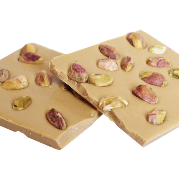 Ta czekolada to nie lada gratka dla miłośników pistacji. Ręcznie przyozdobiona pistacjami tabliczka czekolady to rozkosz nie tylko dla podniebienia, ale również dla oczu.W smaku wyczujemy gęstą, kremową słodycz przeplataną intensywnie wyczuwalną pistacją.Czekolada słodzona cukrem pudrem. Idealna w połączeniu z gorącą herbatą lub kawą. Dzięki pięknemu zdobieniu czekolada będzie doskonałym pomysłem na prezent.W zakładzie używane są: orzechy, migdały oraz mleko