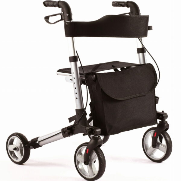 Podpórka czterokołowa YOLA Model: TGR RA 883 _____________________________ Podpórka czterokołowa przeznaczona jest dla osób mających problemy z poruszaniem się, potrzebujących pewnego podparcia i asekuracji podczas przemieszczania się. Podpórka sprawdzi się również jako pomoc dla seniorów w utrzymaniu równowagi, poprawy komfortu życia i zapewnienia bezpieczeństwa przed ewentualnym upadkiem. Zastosowanie podpórki wpływa pozytywnie na powrót do aktywności osób mających problemy z lokomocją lub utrzymaniem pionu. Gwarantuje lepszą równowagę, podparcie i asekurację podczas chodzenia. Pomocna podczas poruszania się, duże 8" koła i wzmocniona konstrukcja daję idealną stabilność podczas ruchu. Przednie skręcane koła pomagają łatwo manewrować podpórką. Nowoczesny wygląd, rurki powlekane farbą z metalicznym połyskiem. Wyposażona w siedzisko z oparciem, podręczną torbę i hamulec z zaciskiem postojowym. Możliwość złożenia do transportu. ** bardzo wytrzymała * ultra lekka * wygodna w transporcie ** Dane techniczne: Waga - 7,6 kg Koła - 8" Szerokość - 62 cm Szerokość siedziska - 46,5 cm Głębokość siedziska - 26 cm Wysokość siedziska - 53,5 cm Szerokość zewnętrzna - 62 cm Długość zewnętrzna - 69 cm Regulacja wysokości - 79,5 - 92,5 cm Maksymalne obciążenie siedziska - 130 kg Kolor ramy - grafitowy Produkt medyczny, wpisany do Rejestru Produktów Medycznych