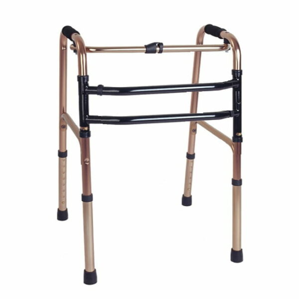 Balkonik aluminiowy składany, krocząco-stały Model AR-002 Balkonik jest sprzętem pomocniczo-rehabilitacyjnym przeznaczonym dla osób niepełnosprawnych ze schorzeniem narządu ruchu, z problemami pionizacji lub mających problem z utrzymaniem równowagi w czasie chodzenia. Wykorzystywany jest również dla utrzymania równowagi w czasie nauki chodzenia po przebytej chorobie lub urazie. Informacje o produkcie: rama aluminiowa, podwójnie wzmocniona składany za pomocą jednego przycisku dwu-funkcyjny: krocząco-stały stabilna i wytrzymała konstrukcja z regulacją wysokości ergonomiczne uchwyty Parametry techniczne: Szerokość: 50 cm Wysokość min.: 79 cm Wysokość max.: 96 cm Waga: 2,5 kg Maksymalne obciążenie: 136 kg Dostępne kolory: Srebrny, Miedziany