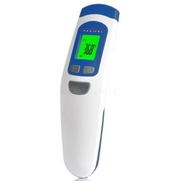 Termometr bezdotykowy wielofunkcyjny ORO-T30 BABY Termometr HI-TECH MEDICAL ORO-T30 BABY na podczerwień zaprojektowano do pomiaru temperatury ciała lub wybranej powierzchni przy użyciu technologii promieniowania podczerwonego. Termometr na podczerwień nie jest inwazyjny, więc jest łatwiejszy i wygodniejszy w użyciu niż tradycyjne termometry doustne, pod ramię, do odbytnicze lub douszne. Jest rzeczywiście „bezkontaktowym” termometrem. Umożliwia pomiar temperatury ciała dorosłych i dzieci bez konieczności dotykania skóry. Dzięki ORO-T30 BABY nie ma potrzeby wprowadzania sondy termometru do jakiejkolwiek części ciała twojego niemowlęcia. Śpiące niemowlę nie obudzi sie podczas kiedy termometr będzie w użyciu ani nie odczuje żadnego dyskomfortu podczas jego użycia kiedy nie śpi. Termometr bezdotykowy HI-TECH MEDICAL ORO-T30 BABY posiada funkcję trójkolorowej identyfikacji poziomu temperatury : przy pomiarze temperatury na czole, gdy temperatura jest = 37,4 - > 37,9 st C, zapali się wyświetlacz pomarańczowy, gdy >= 38,0 st C, zapali się wyświetlacz czerwony. Ultranowoczesny design. Wyjątkowy, innowacyjny i ergonomiczny kształt. Podstawowe cenchy termometru bezdotykowego HI-TECH MEDICAL ORO-T30 BABY 1. Urządzenie służące do pomiaru temperatury ciała (przy użyciu procesu dynamicznej korekcji uwzględniającej temperaturę otoczenia względem temperatury ciała) lub powierzchni wybranego przedmiotu.2. Pomiary przeprowadzane są wyłącznie przy użyciu sondy na podczerwień do pomiaru temperatury, o wysokim stopniu dokładności pomiaru i stabilnym działaniu.3. Funkcja alarmu w przypadku podwyższonej temperatury ciała.4. Funkcja pamięci 32 ostatnich wyników. 5. Podświetlany wyświetlacz cyfrowy LCD.6. Dwa tryby pomiaru temperatury: skala Fahrenheita i Celsjusza, do wyboru.7. Tryb automatycznego oszczędzania energii; termometr wyłącza się, jeśli nie jest używany.8. Niewielki rozmiar, przemyślana konstrukcja i wygodna obsługa.9. Wybór trybu pomiaru temperatury na czole lub powierzchni przedmiotów o temperaturze niższej niż 60°C i emisyjności równej 0,95. 10.Identyfikacja poziomu temperatury: 3 kolory Termometr bezdotykowy HI-TECH MEDICAL ORO-T30 BABY w odróżnieniu od innych elektronicznych termometrów umożliwia pomiar temperatury bez konieczności ponoszenia dodatkowych kosztów związanych z wymianą jednorazowych kapturków bądź też przeprowadzania procesu dezynfekcji, a jednocześnie w sposób całkowity eliminuje możliwość przenoszenia drobnoustrojów. Dzięki zastosowaniu funkcji bezdotykowego mierzenia temperatury, dokonujemy bardzo łatwo i bezinwazyjnie pomiarów temperatury u dzieci. HI-TECH MEDICAL ORO-T30 BABY to nowoczesny termometr, w którym zastosowano technologię pomiaru na podczerwień Termometr charakteryzuje się wysoką dokładnością .Dokładność ta została potwierdzonabadaniami klinicznymi. Wykonanie dokładnego pomiaru temperatury trwa zaledwie 0,5 sekundy. Ergonomiczny wyświetlacz LCD zapewnia łatwy odczyt wyniku. Dzięki zastosowaniu podświetlanego ekranu możemy dokonywać i odczytywać wyniki w nocy. Termometr HI-TECH MEDICAL ORO-T30 BABY posiada funkcję alarmu gorączki Funkcja pamięci pozwala na wyświetlenie wartości 32 ostatnich wyników po wciśnięciu odpowiedniego przycisku. Sygnał dźwiękowy oznacza zakończenie pomiaru i możliwość odczytu wartości temperatury na wyświetlaczu. Funkcja alarmu w przypadku podwyższonej temperatury, przy pomiarze temperatury na czole, gdy temperatura jest wyższa od ustawionej termometr generuje alarm ostrzegający użytkownika o potencjalnej gorączce. Funkcja automatycznego wyłączania zmniejsza zużycie baterii. Obudowa jest wykonaną z trwałego plastiku, zapewniającego najwyższy poziom ochrony urządzenia, jest odporny na uszkodzenia mechaniczne. Wyjątkowy ,innowacyjny i ergonomiczny kształt. Poprawne użycie termometru wymaga starannego zapoznania się z instrukcją obsługi. Termometr wielofunkcyjny ORO-T30 BABY pozwala na dokonanie pomiarów temperatury u dzieci i osób dorosłych w niemal każdych warunkach: w domu, pracy, podróży. Wyniki tych pomiarów charakteryzują się kliniczną dokładnością. Pomiary są błyskawiczne (czas pomiaru – ok. 0,1 sekundy), dzięki czemu termometr może być używany do pomiarów temperatury u nawet bardzo ruchliwych dzieci. Błyskawicznie również wykonamy pomiary temperatury otoczenia, żywności, napojów i kąpieli dla dziecka. SPECYFIKACACJA : • Termometr służy do pomiaru temperatury na czole, temperatury otoczenia i przedmiotów (np.mleka w butelce)• Czas pomiaru: 1 sekunda • Trójkolorowa Identyfikacja poziomu temperatury: przy pomiarze temperatury na czole, gdy temperatura jest = 37,4 - > 37,9 st C, zapali się wyświetlacz pomarańczowy, gdy >= 38,0 st C, zapali się wyświetlacz czerwony.• Podświetlany wyświetlacz cyfrowy LCD trójkolorowy .• Łatwy odczyt wyniku pomiaru• Wybór trybu