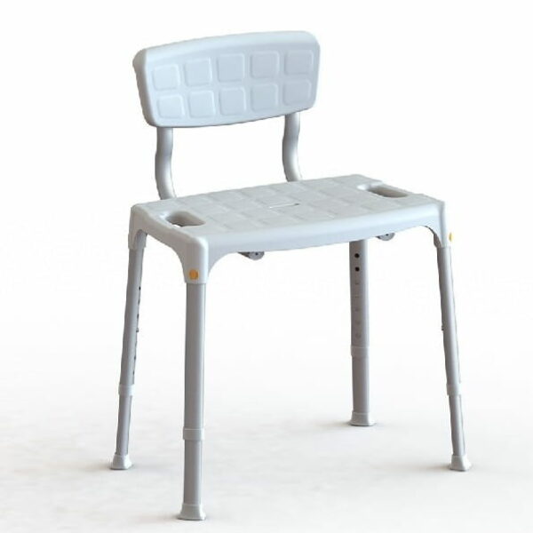 Taboret prysznicowy z oparciem i uchwytami bocznymi 3w1 Model KING-SSBA-20 Taboret prysznicowy jest sprzętem pomocniczym ułatwiającym użytkownikowi wykonywanie czynności higienicznych. Zalecany jest osobom o obniżonej sprawności ruchowej, która uniemożliwia bądź utrudnia samodzielne wykonywanie czynności życia codziennego. Taboret polecany jest do stosowania pod prysznicem, w wannie, łazience i innych wilgotnych pomieszczeniach, w warunkach domowych i szpitalnych. Cechy produktu: aluminiowa rama oparcie i podłokietniki z możliwością demontażu szerokie siedzisko wykonane z wytrzymałego PCV regulowane na wysokość nóżki boczne uchwyty przy siedzisku ułatwiające korzystanie z taboretu (po zdemontowaniu podłokietników) nasadki antypoślizgowe