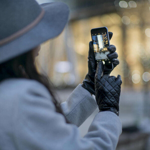 Damskie, ocieplane rękawiczki wykonane z naturalnej skóry z nową, niewidoczną i nieścieralną technologią touchscreen NAPOTOUCH.