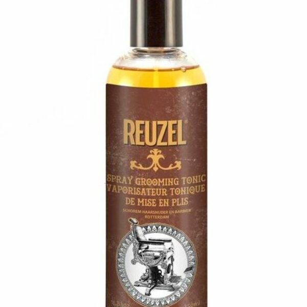 Reuzel Spray Grooming Tonic - tonik do włosów z atomizerem w barberskim rozmiarze 355 ml.Zwiększa objętość włosów i chroni je przed szkodliwym działaniem suszarki. Idealny jako pre styler do modelowania fryzury. Dzięki sprawdzonej formule zwiększania objętości oraz dodatkowym atomizerem sprawia, że produkt jest niezawodny i łatwy w użyciu. Płyn idealnie sprawdza się w pracy nawet z delikatnymi, cienkimi i przerzedzonymi włosami. Zapewnia lekki chwyt i naturalne wykończenie, dzięki czemu po jego zastosowaniu możesz użyć swojej ulubionej pomady mając już gotowe włosy do układania. Produkt na bazie wody - nawilża włosy nie obciążając ich. Zawiera kwasy tłuszczowe Omega 9, które chronią włosy przed gorącym powietrzem suszarki. Lekki chwyt - Naturalny połysk - Wodna bazanawilża bez obciążania włosów,kwasy tłuszczowe Omega 9 chronią włosy przed szkodliwym działaniem suszarki,atomizer poprawiający komfort użytkowania.Sposób użycia: Nanieś bezpośrednio na wilgotne włosy lub nałóż na dłonie po czym wetrzyj we włosy. Dopasuj ilość produktu do długości i gęstości włosów. Przystąp do modelowania przy pomocy suszarki.Pojemność: 355mlSkład: Water (Aqua), PVP, Polysorbate-20, PEG/PPG-25/25 Dimethicone, PEG-40 Hydrogenated Castor Oil, Argania Spinosa (Argan) Kernel Oil, Equisetum Arvense Extract, Hamamelis Virginiana (Witch Hazel) Leaf Extract, Rosmarinus Officialis (Rosemary) Extract, Tocopheryl Acetate, Urtica Dioica (Nettle) Extract, Yellow 6 Cl 15985, Benzophenone-4, Butylphenyl Methylpropional, Fragrance (Parfum), Linalool, Benzyl Alcohol, Dehydroacetic Acid, Phenoxyethanol, Yellow 5 Cl 19140, Aminomethyl Propanol.