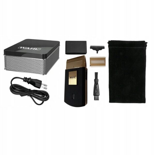 Bezprzewodowa golarka / podgalarka Wahl 3615 Gold Travel Shaver - Limitowana złota edycja!Niewielkie rozmiary oraz niewielka waga golarki Wahl 3615 czynią ją produktem idealnym dla podróżującego mężczyzny. Golarka jest bezprzewodowa, wyposażona w mocny akumulator, który po pełnym naładowaniu gwarantuje 45 minut pracy. W skład zestawu wchodzą dwa etui, jedno na cały zestaw, i drugie na samą maszynkę, szczoteczka do czyszczenia oraz zapasowy komplet tnący.Specyfikacja:Bezprzewodowa golarka męskaLekka, mała i wygodna w użyciu, idealna dla podróżnychPrzycisk ON/OFFZasilanie akumulatoroweDługość pracy po pełnym ładowaniu: 45 minutKontrolka LED informująca o stanie ładowaniaNapięcie: 220 - 230 V, 50/60Hz, 3WGumowana obudowaSystem prostej wymiany folii i noża tnącegoW zestawie zapasowa folia i głowicaWaga golarki: 90 gramWaga opakowania: 295 gramWymiary: 100 x 46 x 18 mmKolor: czarna z elementami srebrnymiEAN: 043917006888W zestawie:Golarka Wahl 3615-1016Dodatkowa folia tnącaDodatkowa głowica tnącaKabel zasilającyEleganckie metalowe pudełko do przechowania całego zestawuEleganckie etui z materiału na golarkęSzczoteczka do czyszczeniaInstrukcja obsługi w języku polskimDowód zakupu: paragon lub fakturaInformacje dodatkowe:PRODUKT Z LINII KONSUMENCKIEJZestaw pochodzi z oficjalnej dystrybucji przeznaczonej na rynek polski, objęty jest pełną ochroną zakupu z tytułu gwarancji na terytorium PolskiOkres gwarancji: 24 m-ceProdukt objęty procedurą "Szybki serwis" - w razie awarii nie naprawiamy, wymieniamy na nowe urządzenieProdukt objęty procedurą serwis "Door-to-door"