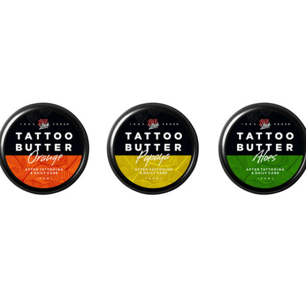 Loveink Tattoo Butter Orange - to masło do pielęgnacji tatuażu o zapachu słodkiej pomarańczy. Starannie dopasowany naturalny skład wzbogacony o olejek pomarańczowy, jest idealny do stosowania zarówno na co dzień, jak i w okresie gojenia, nadając tatuażowi blask i piękny wygląd. Kosmetyk chroni przed działaniem promieni UV, skutecznie zmniejsza uczucie swędzenia i pozostawia płaszcz ochronny (nie tłustą warstwę!), która nie brudzi ubrań i nie lepi się. Produkt jest bardzo wydajny - nałożenie cienkiej warstwy masła wystarcza by cieszyć się natychmiastowym efektem. Siła 100% natury:Olejek pomarańczowy ma działanie przeciwzapalne oraz nadaje piękny zapach;Masło morelowe silnie odżywia skórę ze względu na wysoką zawartość witaminy A i E;Olej z orzechów Macadamia tłoczony na zimno - zmiękcza skórę i łagodzi podrażnienia;Masło Shea odżywia i regeneruje, co bardzo wspiera proces gojenia się tatuażu;Masło migdałowe, czyli eliksir młodości. Przeciwdziała starzeniu się komórek skóry i ją nawilża;Olej kokosowy głęboko wchłania się w skórę zapewniając nawilżenie.100% VEGANKosmetyk przebadany dermatologicznie.Nie zawiera parabenów, konserwantów, ani substancji ropopochodnych. Pojemność: 100 mlSkład INCI: Butyrospermum Parkii Butter, Macadamia Ternifolia Seed Oil, Hydrogenated Vegetable Oil, Prunus Amygdalus Dulcis Oil, Prunus Armeniaca Kernel Oil, Cocos Nucifera Oil, Citrus Aurantium Dulcis Peel Oil, Citral, Limonene,Linalool, Citronellol, GeraniolLoveink Tattoo Butter Papaya - to masło do pielęgnacji tatuażu o zapachu papai. Starannie dopasowany naturalny skład wzbogacony o ekstrakt z owocu papai, jest idealny do stosowania zarówno na co dzień, jak i w okresie gojenia, nadając tatuażowi blask i piękny wygląd. Kosmetyk chroni przed działaniem promieni UV, skutecznie zmniejsza uczucie swędzenia i pozostawia płaszcz ochronny (nie tłustą warstwę!), która nie brudzi ubrań i nie lepi się. Produkt jest bardzo wydajny - nałożenie cienkiej warstwy masła wystarcza by cieszyć się natychmiastowym efektem. Siła 100% natury:Ekstrakt z owocu Papai nadaje niesamowity zapach;Masło morelowe silnie odżywia skórę ze względu na wysoką zawartość witaminy A i E;Olej z orzechów Macadamia tłoczony na zimno - zmiękcza skórę i łagodzi podrażnienia;Masło Shea odżywia i regeneruje, co bardzo wspiera proces gojenia się tatuażu;Masło migdałowe, czyli eliksir młodości. Przeciwdziała starzeniu się komórek skóry i ją nawilża;Olej kokosowy głęboko wchłania się w skórę zapewniając nawilżenie.100% VEGANKosmetyk przebadany dermatologicznie.Nie zawiera parabenów, konserwantów, ani substancji ropopochodnych. Pojemność: 100 mlSkład INCI: Butyrospermum Parkii Butter, Macadamia Ternifolia Seed Oil, Hydrogenated Vegetable Oil, Prunus Amygdalus Dulcis Oil, Prunus Armeniaca Kernel Oil, Cocos Nucifera Oil, PerfumeLoveink Tattoo Butter Aloes - to masło do pielęgnacji tatuażu o zapachu aloesowym. Starannie dopasowany naturalny skład wzbogacony o sok z liści aloesu, jest idealny do stosowania zarówno na co dzień, jak i w okresie gojenia, nadając tatuażowi blask i piękny wygląd. Kosmetyk chroni przed działaniem promieni UV, skutecznie zmniejsza uczucie swędzenia i pozostawia płaszcz ochronny (nie tłustą warstwę!), która nie brudzi ubrań i nie lepi się. Produkt jest bardzo wydajny - nałożenie cienkiej warstwy masła wystarcza by cieszyć się natychmiastowym efektem. Siła 100% natury:Sok z liści aloesu ma działanie łagodzące i przeciwzapalne. Ponad to przyspiesza gojenie ran, łagodzi podrażnienia, silnie nawilża i odżywia skórę oraz ma działanie bakteriobójcze;Masło morelowe silnie odżywia skórę ze względu na wysoką zawartość witaminy A i E;Olej z orzechów Macadamia tłoczony na zimno - zmiękcza skórę i łagodzi podrażnienia;Masło Shea odżywia i regeneruje, co bardzo wspiera proces gojenia się tatuażu;Masło migdałowe, czyli eliksir młodości. Przeciwdziała starzeniu się komórek skóry i ją nawilża;Olej kokosowy głęboko wchłania się w skórę zapewniając nawilżenie.100% VEGANKosmetyk przebadany dermatologicznie.Nie zawiera parabenów, konserwantów, ani substancji ropopochodnych. Pojemność: 100 mlSkład INCI: Butyrospermum Parkii Butter, Macadamia Ternifolia Seed Oil,Prunus Amygdalus Dulcis Oil, Prunus Armeniaca Kernel Oil, HydrogenatedVegetable Oil, Aloe Barbadensis Leaf Extract, Cocos Nucifera Oil,Tocopherol(witamina E), Aroma.
