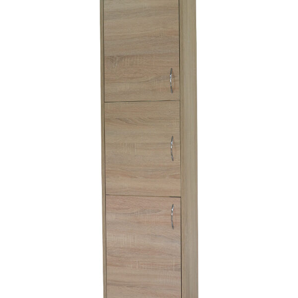 wysokość: 170 cmszerokość: 40 cmgłębokość: 30 cm Szafki wykonane z płyty laminowanej 16 mm, obrzeża oklejone PCV - odpornym na wilgoć Metalowy uchwyt w kolorze srebrnym Plecy wykonane z płyty HDF 3mm