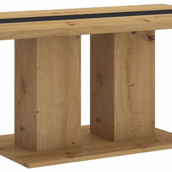 Stolik kawowy To praktyczne oraz estetyczne uzupełnienie aranżacji salonu. Niewielka ława do salonu uprzyjemni nam wypicie kawy, a także pozwoli odłożyć książkę, czasopismo czy też pilota do telewizora. Stolik kawowy Boston to elegancki mebel, który może stać się ozdobą Twojego salonu. Cechy produktu: Praktyczny blat o wymiarach 110x60 cm Solidny blat o grubości 28 mm Podstawa wykonana z płyty laminowanej o grubości 16 mm Stylowa czarna wstawka w każdej wersji kolorystycznej Cztery wersje kolorystyczne Nowoczesny design Wysoka jakość wykonania Wyprodukowano w POLSCE Odporny na zalania i zarysowania Blat został wykonany wytrzymałej płyty laminowanej, która charakteryzuje się dużą trwałością oraz niską wagą. Mocna laminowana powłoka oraz obrzeża wykończone tworzywem ABS sprawiają, że produkt jest dużo bardziej odporny na zalania i zarysowania. Często tańsze blaty pęcznieją i odkształcają się po kontakcie z wilgocią. Krótki kontakt z wilgocią nie niszczy naszego blatu! Kawa w dobrym stylu Stolik kawowy do salonu Boston został wykonany w nowoczesnym oraz minimalistycznym stylu. Przełamaniem kolorystycznym jest czarna wstawka przechodząca przez całą długość blatu stolika kawowego. Ława do salonu Boston posiada dwie kwadratowe nogi, które nie tylko gwarantują stabilność mebla lecz również pełnią rolę ozdobną. Blat stołu został wykonany z solidnej płyty laminowanej o grubości 28mm. Nowoczesny, a zarazem minimalistyczny design stolika kawowego sprawia, że mebel z łatwością wkomponuje się niemal do każdego pomieszczenia. Stolik kawowy Boston znajdzie swoje miejsce zarówno w loftowych apartamentach jak i skandynawskich salonach. Stolik w salonie – nie tylko ładny lecz praktyczny Stolik kawowy do salonu Boston posiada praktyczny blat o wielkości 110x60 cm. To wystarczająca powierzchnia, by pomieścić nie tylko filiżanki z kawą, ale również cukierniczkę, ciastka czy talerzyki. Wspólna kawa w salonie poprawi nam nastrój, a stolik Boston zadba, by spotkanie odbyło się w komfortowych warunkach. Wysokość stolika kawowego to 52,7 cm – to odpowiednia wysokość, by siedząc na sofie odłożyć filiżankę z kawą. Stolik kawowy opiera się na prostokątnej podstawie, dzięki czemu mebel stoi prosto i nie chybocze się. Wymiary