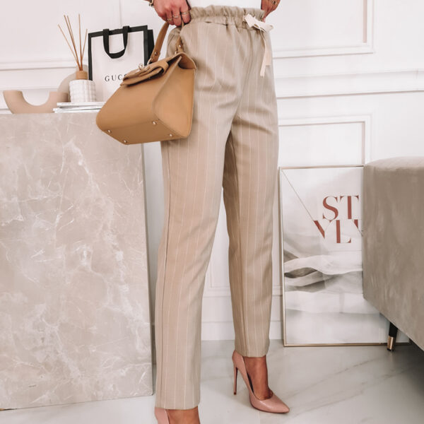Spodnie posiadają kieszenie. Klasyczny krój idealny do codziennych jak i eleganckich stylizacji.