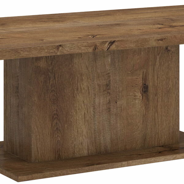 Stolik kawowy To praktyczne oraz estetyczne uzupełnienie aranżacji salonu. Niewielka ława do salonu uprzyjemni nam wypicie kawy, a także pozwoli odłożyć książkę, czasopismo czy też pilota do telewizora. Stolik kawowy Denver to elegancki mebel, który może stać się ozdobą Twojego salonu. Cechy produktu: Praktyczny blat o wymiarach 110x60 cm Solidny blat o grubości 28 mm Podstawa wykonana z płyty laminowanej o grubości 16 mm Szeroka podstawa stołu eliminująca chybotliwość Cztery wersje kolorystyczne Nowoczesny design Wysoka jakość wykonania Wyprodukowano w POLSCE Odporny na zalania i zarysowania Blat został wykonany wytrzymałej płyty laminowanej, która charakteryzuje się dużą trwałością oraz niską wagą. Mocna laminowana powłoka oraz obrzeża wykończone tworzywem ABS sprawiają, że produkt jest dużo bardziej odporny na zalania i zarysowania. Często tańsze blaty pęcznieją i odkształcają się po kontakcie z wilgocią. Krótki kontakt z wilgocią nie niszczy naszego blatu! Kawa w dobrym stylu Stolik kawowy do salonu Denver został wykonany w nowoczesnym oraz minimalistycznym stylu. Ława do salonu Denver jest pokryta w całości jednym z czterech dostępnych kolorów. W ten sposób stolik tworzy spójną i elegancką całość. Ława do stołu Denver posiada jedną, dużą prostokątną nogę przymocowaną do podstawy, która nie tylko gwarantuje stabilność mebla lecz również pełni rolę ozdobną. Blat stołu został wykonany z solidnej płyty laminowanej o grubości 28mm. Nowoczesny, a zarazem minimalistyczny design stolika kawowego sprawia, że mebel z łatwością wkomponuje się niemal do każdego pomieszczenia. Stolik kawowy Denver znajdzie swoje miejsce zarówno w loftowych apartamentach jak i skandynawskich salonach. Stolik w salonie – nie tylko ładny lecz praktyczny Stolik kawowy do salonu Denver posiada praktyczny blat o wielkości 110x60 cm. To wystarczająca powierzchnia, by pomieścić nie tylko filiżanki z kawą, ale również cukierniczkę, ciastka czy talerzyki. Wspólna kawa w salonie poprawi nam nastrój, a stolik Denver zadba, by spotkanie odbyło się w komfortowych warunkach. Wysokość stolika kawowego to 43 cm – to odpowiednia wysokość, by siedząc na sofie odłożyć filiżankę z kawą. Stolik kawowy opiera się na prostokątnej podstawie, dzięki czemu mebel stoi prosto i nie chybocze się. Wymiary