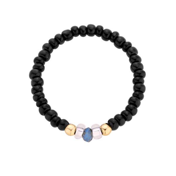 Pierścionek elastyczny z kryształków, koralików szklanych i kuleczek GF.