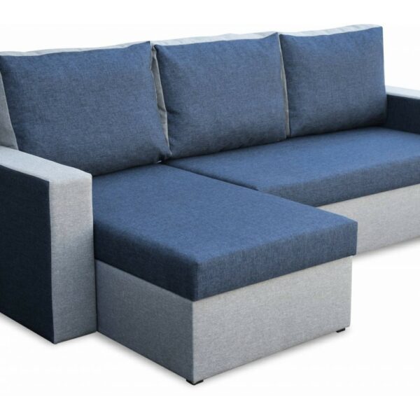 Home to nowoczesny, stylowy i praktyczny narożnik, posiadający tzw. "funkcję spania" - czyli możliwość rozłożenia i wykorzystania go jako pełnowymiarowego, dwu-osobowego łózka o rozmiarach 140x190. W zestawie znajdują się trzy poduszki, które można odwracać, zawsze wtedy gdy chcesz odświeżyć wygląd swojego salonu - dzięki zastosowaniu dwóch kolorów, po odwróceniu poduszek mamy wrażenie, że narożnik zmienił kolor oparcia.