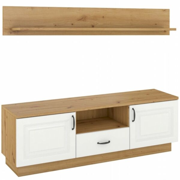 Szafka RTV LOFT Stolik pod TV Flawia150x40 + Półka Biały/Artisan