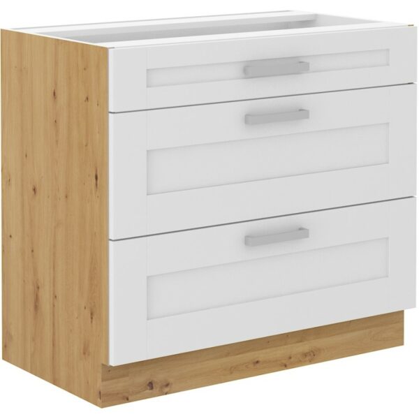 Szafka Stojąca Kuchenna 3 Szuflady 80 cm LUNA Biały/Artisan