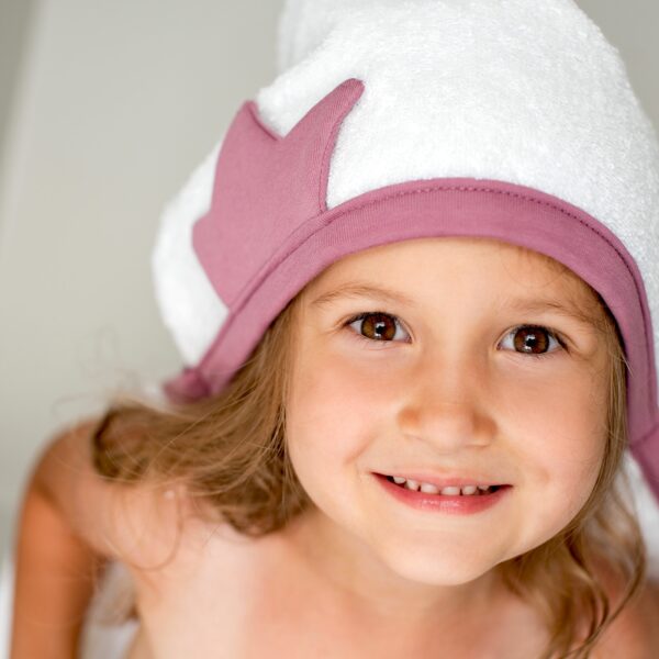 Ręcznik Princess Wzór chroniony (zgłoszenie patentowe P.407821) To przemyślane kombo: doskonały ręcznik z funkcją fartuszkaRozmiar: 130x70 cmSkład: 100% frotte bawełniana, 100% bawełna organiczna Bawełna organiczna jest uprawiana w sposób organiczny czyli naturalny, wolny od sztucznych nawozów i chemicznych środków do spryskiwania roślin. Jej włókna są bardziej wytrzymałe i gładsze, co sprawia, że przędza jest delikatniejsza w dotyku. Pomiędzy włókninami jest większy przepływ powietrza, dzięki czemu bawełna organiczna jest hipoalergiczna i nie wywołuje podrażnień na delikatnej skórze alergika lub noworodka.Pielęgnacja / pranie:Ręcznik można prać w pralce w temp 60 stopni C. Należy stosować się do symboli na metkach produktów.Certyfikaty: Produkt wykonany z frotte bawełnianej posiadającej certyfikat, jest bezpieczny i przyjazny dla środowiska. Wszystkie materiały używane w produktach POOFI posiadają certyfikat Oeko Tex Standard 100 w klasie 1 (dopuszczone do bezpośredniego kontaktu ze skórą noworodka).Produkcja:Polska Duży, bardzo chłonny i puszysty. Frotte, z której jest wykonany, za każdym razem zachwyca swoją miękkością. Sprawdzi się jako pierwszy ręcznik, ale nie tylko- dzięki temu, że ma sprytny kształt będziecie z niego korzystać znacznie dłużej! Ręcznik Poofi to fartuszek kąpielowy, otulacz, ponczo - wszystko to w jednym zgrabnym ręczniku Poofi. Co wyróżnia ręcznik Poofi?• funkcja Fartuszka Ręcznik posiada specjalną gumkę, która pozwala na używanie produktu jak fartuszka, dzięki temu osoba kąpiąca jest chroniona przez niespodziewanymi pluskami i zamoczeniem. Ponadto, po wyjęciu dziecka z kąpieli możesz je od razu przytulić do siebie i niemalże natychmiast osuszyć. Funkcja fartuszka będzie tez zbawienna jeśli Twoja łazienka jest zbyt mała i nie masz miejsca, aby wstawić tam przewijak. Od razu po wyjęciu dziecka z wanienki otulasz je ręcznikiem, który masz na szyi i komfortowo przechodzisz do miejsca, gdzie standardowo pielęgnujesz swoje dziecko.• doskonała jakość frotteRęcznik jest wykonany z mięsistej, bardzo puszystej frotte bawełnianej( gramatura 480 g), która wykazuje znakomite właściwości absorpcyjne, a z każdym kolejnym praniem ręcznik zyskuje na jakości.• kaptur Ręcznik posiada duży i głęboki kaptur, który skutecznie zabezpiecza główkę dziecka przed wychłodzeniem. Będzie też idealny dla starszaka.• kształt Krawędzie ręcznika są zaokrąglone, co świetnie sprawdzi się w przypadku opieki nad starszakami, np. kiedy chcemy otulić stojące w wannie dziecko i uniknąć przy tym zamoczenia ręcznika. Dzięki tej funkcji, dziecko może także swobodnie chodzić otulone ręcznikiem - bez ryzyka potknięcia się.• nie tylko dla niemowlakaRęcznik jest tak zaprojektowany, aby służyć przez długie lata. Frotte, z której jest uszyty ręcznik Poofi jest fantastycznej jakości, a jego chłonność dodatkowo wzrasta wraz z każdym kolejnym cyklem prania. Rozmiar ręcznika i jego kształt są tak przemyślane, aby ręcznik rósł razem z dzieckiem.• duży wybór kolorówW ofercie jest aż 6 kolorów do wyboru, znajdzie się coś zarówno dla księżniczek jak i dla uroczych misiaków.• opakowanie Ręczniki pakujemy w bawełniane woreczki z serduszkiem Poofi. Takie opakowanie z pewnością wykorzystasz na wiele sposobów, a serduszku posłuży jako zabawka czy zawieszka do wózka.• polska produkcjaProdukujemy w Polsce i każdego z kim współpracujemy znamy osobiście. Nie działamy anonimowo, wiemy w jakich warunkach powstają nasze produkty i płacimy więcej, aby dołożyć cegiełkę do utrzymania rodzinnych, małych i jakościowych szwalni. Funkcja fartuszka – jak to działa?1.Zamocuj ręcznik na szyi i ciesz się dobrą zabawą w wodzie bez obaw o zachlapanie! 2.Wyjmij dziecko z kąpieli, przytul do siebie i otul ręcznikiem 3.Przenieś dziecko na przewijak i ostrożnie zdejmij ręcznik ze swojej szyi. Delikatnie osusz ciało dziecka ręcznikiem.