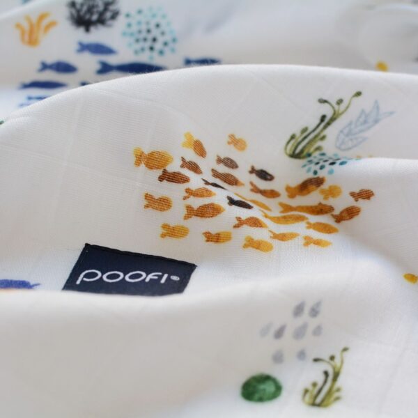 POOFI Pieluszka bambusowa Ocean 73x73cm kolor: ławice rybek