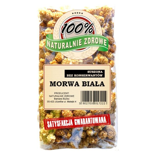 Owoce morwy zaliczane są do grona superfoods, co oznacza, że ich walory zdrowotne są naprawdę zdumiewające! Co więcej, suszona morwa ma też wyjątkowo przyjemny smak, który doskonale komponuje się z wieloma różnymi potrawami. Suszone owoce morwy białej będą świetnym dodatkiem do porannego smoothie, owsianki, jogurtu a także wielu różnych wypieków. Oczywiście można ją też spożywać na surowo i traktować jako przekąskę lub składniki własnego wariantu „mieszanki studenckiej”. Morwa suszona stanowi też bardzo dobrą bazę do stworzenia oryginalnych oraz bardzo smacznych nalewek.Morwa biała suszona – właściwościSuszone owoce morwy białej to doskonałe źródło potężnych przeciwutleniaczy, które zwalczają wolne rodniki, mają właściwości przeciwzapalne i wspomagają krążenie krwi. Poza tym w morwie znajdziemy także resweratrol – antyoksydant doskonale znany miłośnikom wina, który zapobiega przedwczesnemu starzeniu się. Morwa biała posiada w sobie również flawonoidy, które są powszechnie znane ze swojego działania antyrakowego.Morwa, zwłaszcza suszona, jest też świetnym sposobem na wzbogacenie naszej diety w błonnik, co, w połączeniu z jej właściwościami do obniżania poziomu cukru we krwi, sprawia, że jest ona potężnym sprzymierzeńcem osób odchudzających się. Co istotne, nie jest tak kaloryczna jak inne popularne owoce suszone. Nie oznacza to oczywiście, że można ją spożywać bez ograniczeń. Ze względu na małe rozmiary i smak łatwo przekroczyć odpowiednie dawki. Morwa dostarczy nam też potężnej dawki witaminy C – ma jej więcej niż cytrusy!. To też bogate źródło białka, żelaza i wapnia. Wysoki indeks glikemiczny sprawia, że nie nadaje się dla osób cierpiących na cukrzyce.Suszoną morwę białą należy trzymać w szczelnie zamkniętymi pojemniku lub opakowaniu. Można ją przechowywać w temperaturze pokojowej lub w lodówce aż przez rok, co sprawia, że jest idealnym sposobem na wzbogacenie diety o minerały i witaminy zarówno zimą, jak i latem. A zdecydowanie warto to zrobić – owoce morwy białej są szeroko stosowane w wielu preparatach leczniczych, również tych przeznaczonych przy leczeniu różnego rodzaju problemów żołądkowych.Morwa biała suszona – cenaSuszona morwa oferowana przez nasz sklep Naturalnie Zdrowe to bez wątpienia najlepsza propozycja dla tych, którzy cenią zdrowy styl życia oraz zwracają uwagę na to, co jedzą. W składzie nie znajdziecie żadnych zbędnych dodatków i konserwantów. Nasza morwa suszona jest niesiarkowana, a jej słodycz całkowicie naturalna. Co więcej, cena morwy w Naturalnie Zdrowe jest wyjątkowo przystępna! Skład: morwa biała, suszona, 100% bez konserwantówKraj pochodzenia: TurcjaMasa netto: od 200 gW zakładzie wykorzystywane są surowce zawierające: gluten, sezam, różne orzechy.Data przydatności, kraj pochodzenia i numer partii towaru znajdują się na opakowaniu.Przechowywać szczelnie zamknięte w suchym i chłodnym miejscu.Opakowanie może różnić się wyglądem w zależności od partii towaru. Wartość odżywcza w 100 g produktuWartość energetyczna1442 kJ / 340 kcalTłuszcz1,5 gw tym kwasy tłuszczowe nasycone0,3 gWęglowodany75 gw tym cukry38 gBłonnik-Białko4,2 gSól0,2 g PRODUCENT: NATURALNIE ZDROWE Barbara Bućko 05-420 Józefów ul. Matejki 4
