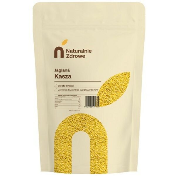 Kasza jaglana – złoto na talerzuKasza jaglana pozyskiwana z ziaren prosa to jedna z najstarszych i najzdrowszych znanych współcześnie kasz. Uprawiana była już w okresie neolitu, co oznacza, że na naszych talerzach gości od wielu tysięcy lat. Śladowe ilości glutenu oraz wysoka zawartość substancji odżywczych to tylko niektóre z właściwości sprawiających, że niemal zapomniana polska jaglana kasza powraca obecnie do łask. Jest łatwa i szybka do przygotowania i bardzo atrakcyjnie prezentuje się na talerzu. Można dołączyć ją do wielu dań. Świetnie sprawdzi się jako dodatek do zup, ale będzie też solidną podstawą do przyrządzenia z niej samodzielnego dania. Właściwości kaszy jaglanej i niepowtarzalny smak docenią wszyscy domownicy. Kasza jaglana na wiele sposobówJagły, czyli kasze jaglane, charakteryzuje oryginalny i delikatny smak, który z całą pewnością uzyskują dzięki gotowaniu w wodzie wymieszanej z mlekiem. Tak przygotowana kasza może stać się podstawą do owocowych deserów. Ugotowana na sypko stanowi dodatek do mięs, zapiekanek, zup czy farszy. Może być też ciekawą alternatywą i zastąpić z powodzeniem ryż w gołąbkach. Po zmieleniu może znaleźć również zastosowanie przy wypieku chleba.Jaglana kasza stanowi bazę do potraw kuchni wschodniej czy potraw rodem z Afryki lub Azji. Jest drobna i szybka w przygotowaniu, dlatego kaszę jaglaną dorzucisz do śniadania, zupy mlecznej ze świeżymi owocami, a nawet upieczesz na jej podstawie wieloziarniste ciasteczka. Możesz także pokusić się o stworzenie dania, do którego użyjesz mieszanki wielu różnych kasz. Uzyskany dzięki temu mix produktów pozwoli uzyskać ciekawy smak i być jednocześnie źródłem wielu zdrowych składników odżywczych i witamin. Kasza jaglana w codziennej diecieCzy kasza jaglana jest zdrowa? Oczywiście! Wszystkie kasze, zwłaszcza te poddane tylko podstawowej obróbce, są bogatym źródłem pełnowartościowego błonnika. Z tego powodu spożywanie kasz, a szczególnie kaszy jaglanej, powinny wziąć pod uwagę osoby z problemami trawiennymi oraz dbające o smukłą sylwetkę i zdrowy tryb życia. Jagły, czyli inaczej kasza jaglana, stanowią cenne źródło dobrze przyswajalnego białka oraz zawierają składników odżywczych. Kasza jaglana zawiera w sobie witaminy z grupy B (0,75 mg / 100 g), miedzi (0,78 mg / 100 g) i żelaza (4,8 mg / 100 g). Idealnie sprawdza się także w diecie osób stroniących od glutenu i tych, którzy obciążeni są pracą umysłową, jak uczniowie i studenci. Ponadto kasza jaglana wyróżnia się wysoką zawartością takich pierwiastków jak cynku (3,4 mg / 100 g), fosforu (240 mg / 100 g), a także magnezu (100 mg / 100 g). Zastępują płatki błyskawiczne i wysokowęglowodanowe posiłki, które dodają energii, ale nie czynią tego równomiernie, przez co już dwie-trzy godziny po śniadaniu czy obiedzie możesz czuć się głodny lub senny.Kasza jaglana pozwoli zastąpić płatki błyskawiczne i wysokowęglowodanowe posiłki, które dodają energii, ale nie czynią tego równomiernie, przez co już dwie-trzy godziny po zjedzeniu można odczuć głód lub senność. Ze względu na stosunkowo wysoki indeks glikemiczny raczej odradzana jest diabetykom. Natomiast zainteresować się nią powinny osoby, które chcą poprawić kondycję włosów i paznokci. Obecność w składzie krzemu sprzyja ich odbudowie. Kasza jaglana – dla kogo?Spożywanie jagły przynosi wiele korzyści, ale są też pewne minusy. Wadą kaszy jaglanej jest to, że nie nadaje się do zbyt długiego przechowywania. Stare jagły wykorzystane w gotowaniu zepsują smak potraw, dodając im charakterystycznej goryczy. Przyczyną tego jest fakt, że kasza jaglana zawiera dużo tłuszczu, który powoduje jełczenie łuskanych ziaren prosa. Również skłonność do pochłaniania zapachów z otoczenia może w efekcie sprawić, że przygotowane danie nabierze niepożądanych smaków i aromatów. Kaszę należy przechowywać szczelnie zamkniętą, w suchym i chłodnym miejscu.skład : kasza jaglana 100%Kraj pochodzenia : Polskamasa netto : 1kg W zakładzie wykorzystywane są surowce zawierające: gluten, sezam, różne orzechyData przydatności i numer partii towaru znajdują się na opakowaniu.Przechowywać szczelnie zamknięte w suchym i chłodnym miejscu.Opakowanie może różnić się wyglądem w zależności od partii towaru.Wartość odżywcza w 100g produktuWartość energetyczna1474kJ (348kcal)Tłuszcz 2,9 gw tym kwasy tłuszczowe nasycone0,6 gWęglowodany68,4 g w tym cukry0,1 gBłonnik3,2 gBiałko10,5 gSól0,013 gWitaminy: Tiamina (wit. B1)0,73 mg (66%)*Ryboflawina0,38 mg (27%)*Witamina B60,75 mg (53%)*Kwas foliowy30 µg (15%)*Składniki mineralne Fosfor240 mg (34%)*Żelazo4,8 mg (34%)*Magnez100 mg (27%)*Cynk3,4 mg (34%)*Miedź0,78 mg (78%)**% referencyjnej wartości spożycia dla osoby dorosłej.PRODUCENT : NATURALNIE ZDROWE Barbara Bućko 05-420 Józefów ul Matejki 4