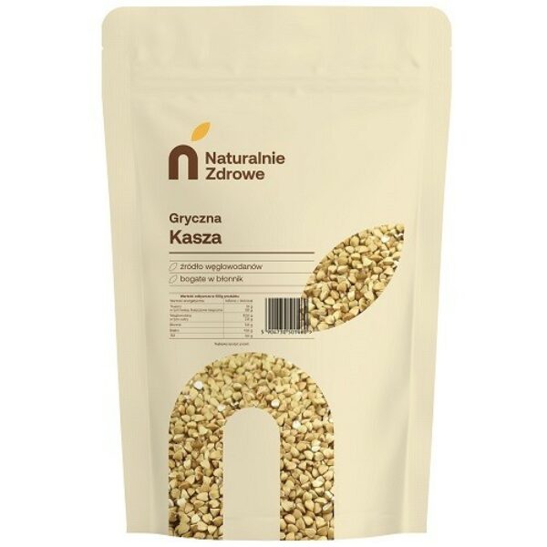Kasza gryczana pozyskiwana z obłuskanych ziaren gryki to jeden z najchętniej wybieranych dodatków do mięsa czy warzyw. Jako jedyna z goszczących na naszych stołach kasz, nie powstaje ze zboża (gryka nie jest zbożem), a co za tym idzie, nie zawiera glutenu. Dodatkowo dzięki wysokiej zawartości błonnika pokarmowego (5,9g / 100g) idealnie sprawdza się dla tych, którzy liczą kalorie i dbają o linię. Wpływa korzystnie na procesy trawienne i wspomaga pracę jelit. Polska tatarkaKasza gryczana nazywana jest także tatarką, gdyż czas jej pojawienia się na ziemiach polskich błędnie wiązano z najazdami tatarskimi. W rzeczywistości kasza na tym terenie rozpowszechniła się dopiero w XV wieku. Produkowana z gryki zwyczajnej bywa określana także mianem „hreczki”, a jej odmiany noszą oryginalne miana regionalne.Kasza niepalonaZależnie od sposobu obróbki można wyróżnić kaszę gryczaną białą, znaną także pod nazwą: kasza niepalona polska lub zwykłą oraz prażoną lub paloną. W obrębie kaszy gryczanej niepalonej zaznaczają się trzy podtypy, w zależności od poziomu rozdrobnienia ziaren. Za najdrobniejszą uznaje się kaszę krakowską.Kasza niepalona polska stanowi zdrowszy wariant gryki, gdyż charakteryzuje się wysoką jakością białka i niezwykłymi właściwościami przeciwutleniającymi. Kasza palona jest pod tym względem uboższa, a odpowiedzialna za to jest wysoka temperatura, która niszczy witaminy i minerały w procesie palenia. Kasza gryczana niepalona właściwościJak większość kasz również gryczana stanowi doskonałe źródło białka. W 100g kaszy gryczanej możemy go znaleźć około 13 g. Oczywiście zdecydowana większość składu to węglowodany złożone, które uwalniając się wolno dostarczają energii przez długi czas. W kaszy gryczanej obecne są też witaminy z grupy B, a także sporo magnezu i cynku. Warto podkreślić, że spożywanie kaszy gryczanej pozwala na obniżenie ciśnienia krwi, a także poziomu cholesterolu. Jest też produktem o niskim indeksie glikemicznym.Zastosowanie kaszy gryczanejPopularna hreczka może być podawana:w postaci sypkiej, jako dodatek do mięs i warzyw,jako składowa zup, np. popularnego krupniku,jako składnik farszu do krokietów czy pierogów,w gołąbkach, kaszance i pyzach,w tradycyjnych potrawach bożonarodzeniowych.Należy pamiętać, że podczas gotowania kasza może zwiększyć swoją objętość nawet trzykrotnie. Najlepiej gotować ją na małym ogniu przez około 20 minut, a następnie pozostawić w garnku by wchłonęła resztę wody. Ilość wody powinna wynosić dwukrotność objętości kaszy gryczanej. Nie ma potrzeby płukać kaszy przed gotowaniem. Polecamy na koniec dodać łyżeczkę masła lub oleju dla smaku i sypkości. KASZA GRYCZANA BIAŁAskład: kasza gryczana niepalona 100%Kraj pochodzenia: Polskamasa netto: 1kg W zakładzie wykorzystywane są surowce zawierające: gluten, sezam, różne orzechyData przydatności i numer partii towaru znajdują się na opakowaniu.Przechowywać szczelnie zamknięte w suchym i chłodnym miejscu.Opakowanie może różnić się wyglądem w zależności od partii towaru.PRODUCENT:NATURALNIE ZDROWE Barbara Bućko 05-420 Józefów ul. Matejki 4 Wartość odżywcza w 100g produktuWartość energetyczna1454kJ/ 344kcalTłuszcz 3,1 gw tym kwasy tłuszczowe nasycone0,6 gWęglowodany63,0 g w tym cukry2,9 gBłonnik5,9 gBiałko13,0 gSól0,0 gWitaminy: Tiamina (wit. B1)0,54 mg (49%)*Kwas foliowy32 µg (16%)*Składniki mineralne Potas443 mg (22%)*Magnez218 mg (58%)*Fosfor459 mg (66%)*Cynk3,5 mg (35%)*Miedź0,41 mg (41%)*Mangan2,04 mg (102%)**% referencyjnej wartości spożycia dla osoby dorosłej.