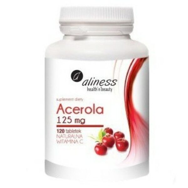 Acerola – bomba witaminy CZ witaminą C najczęściej kojarzy się znana wszystkim cytryna. To ją dodajemy do herbaty czy naparów szczególnie w okresie jesienno-zimowym, kiedy ilość zachorowań i infekcji jest największa. To jednak w aceroli jest bez porównania większe stężenie tej witaminy i nawet kilka jej owoców pokryje dzienne zapotrzebowanie u dorosłego człowieka. Dzięki temu w maksymalny sposób można wzmocnić układ odpornościowy organizmu, a dzięki silnym właściwością przeciwutleniającym ma również działanie przeciwnowotworowe oraz spowalnia efekty starzenia. To jednak nie koniec korzyści, jakie niesie ze sobą spożywanie aceroli.Acerola – legalny dopingOlbrzymia zawartość witaminy C w aceroli sprzyja również sportowcom w czasie ćwiczeń i w okresie między treningami. Szybkie przemęczenie albo słaba regeneracja? Sfatygowane mięśnie i bolące stawy? Jeśli takie objawy nie są rzadkością, to warto pomyśleć nad dostarczeniem do organizmu odpowiedniej dawki dobrze przyswajalnej witaminy C. Przy okazji powinna zmniejszyć się również liczba siniaków.Acerola – sokoli wzrok na starośćJakość widzenia pogarsza się wraz z wiekiem. Jest to proces całkowicie naturalny. Mimo to warto zadbać o oczy, szczególnie na stare lata. Oczywiście proces taki najlepiej zacząć jak najwcześniej i wprowadzić odpowiednie dawki witaminy C znacznie wcześniej. Zawarty w aceroli beta-karoten zagwarantuje, że w podeszłym wieku nadal będziemy mogli cieszyć się dobrym wzrokiem, a oczy w dobrej kondycji nie będą się tak męczyć czytaniem czy oglądaniem telewizji.Acerola dostępna w Naturalnie Zdrowe to 120 tabletek, czyli zapas na nawet 4 miesiące stosowania. Wysoka jakość surowca i bardzo dobra przyswajalność pozwala w 100% pokryć dzienne zapotrzebowanie człowieka.Składniki (1 tabletka):Wyciąg z owoców aceroli500 mgW tym witamina C125mgOstrzeżenie:Nie należy przekraczać zalecanej porcji do spożycia w ciągu dnia. Suplement diety nie może być stosowany jako substytut zróżnicowanej diety. Zaleca się stosowanie zrównoważonej i zróżnicowanej diety i zdrowego trybu życia. Przechowywać w temperaturze pokojowej w sposób niedostępny dla małych dzieci. Chronić przed wilgocią. Terminy przydatności do użycia znajdują się na każdym opakowaniu jednostkowym.Producent:MEDICALINEOSTRÓWIEC 15005-480 KARCZEW