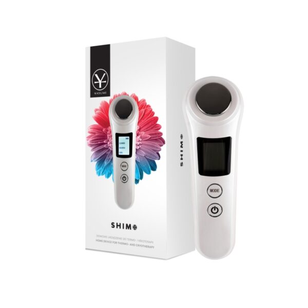 Shimo - Terapia Ciepłem / Zimnem / Jonami Dodatnimi i Ujemnymi. Urządzenie kosmetyczne do użytku domowego pozwala na wykonanie zabiegów kosmetycznych w domowym zaciszu. Urządzenie Shimo wyposażone jest w trzy programy:1. CLEANSE - oczyszczający skórę wytwarzanymi podczas zabiegu jonami dodatnimi i termoterapią do 42'C, 2. NOURISH - wprowadzający składniki odżywcze w głąb skóry wytwarzanymi jonami ujemnymi i termoterapią do 42'C3. COOL - chłodzący skórę do temperatury 6'CZabieg wykonujemy na skórę oczyszczoną z makijażu.Pierwszy program CLEANSE oczyszcza skórę. Jony dodatnie wydobywają zanieczyszczenia na powierzchnię skóry. Termoterapia ogrzewająca skórę do temperatury 42'C otwiera pory, wspomaga krążenie krwi i przemianę materii.Drugi program NOURISH działa na skórę odżywczo, dlatego warto połączyć do z zastosowaniem serum lub ampułką. Jony ujemne wtłaczają składniki aktywne w głębsze warstwy skóry, by działały jeszcze skuteczniej. Termoterapia poprawia wchłanianie składników i stymuluje fibroblasty w skórze do produkcji kolagenu i elastyny.Ostatni program COOL- krioterapeutyczny, jest idealnym rozwiązaniem dla skór wrażliwych i naczyniowych. Zatrzymuje nawilżenie w skórze, łagodzi podrażnienia, liftinguje i zwęża pory. Funkcja chłodzenia skutecznie niweluje obrzęki wokół oczu. Program ten wykonujemy stemplowo, przykładając głowicę urządzenia miejsce przy miejscu. Można użyć podczas tego programu maseczkę biocelulozową na twarz, gdyż zapewni to silne nawilżenie skóry.Procedurę zabiegową z urządzeniem SHIMO można powtarzać dwa razy w tygodniu. W przypadku lokalnych obrzęków program krioterapeutyczny można stosować przez kilka minut co drugi dzień.Wskazania: oczyszczanie, potrzeba odżywienia i regeneracji skóry, wiotka skóra, rozszerzone pory, obrzęki wokół oczu