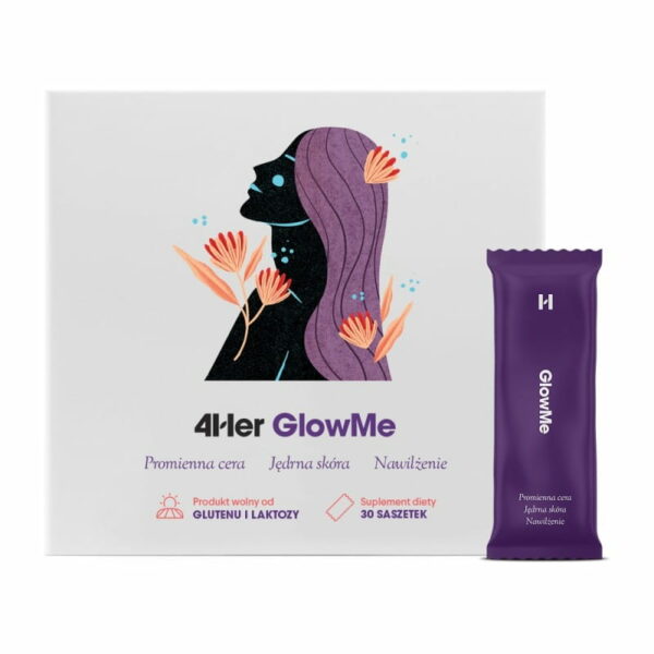 GlowMe - Naturalny Blask i Jędrna Skóra - suplement. GlowMe to połączenie takich składników, które odżywiają Twoją skórę od wewnątrz, abyś mogła cieszyć się pięknym wyglądem i zdrową, jędrną skórą. Zawarty w składzie kolagen rybi poprawia jędrność skóry i przywraca sprężystość. W jednej saszetce jest aż 5000mg kolagenu, który silnie nawilża skórę i w pełni ją odbudowuje. Witamina C z kolei stymuluje syntezę naturalnego kolagenu w skórze, zabezpiecza przed stresem oksydacyjnym oraz zmniejsza uczucie zmęczenia. Hialuronian sodu nawadnia skórę od środka, w naturalny sposób wypełniając skórę i niwelując zmarszczki. Ekstrakt z pestek winogron to kumulacja antyoksydantów, o właściwościach odmładzających. Witamina A i utrzymują skórę w doskonałej zdrowej kondycji, wspierają właściwy stan błon śluzowych oraz chronią komórki przed starzeniem. Wskazania: oznaki starzenia się skóry, utrata jędrności, zmarszczki, utrata gęstości, niedostateczny poziom nawilżenia, potrzeba odżywienia i regeneracjiPojemność: 30 saszetek