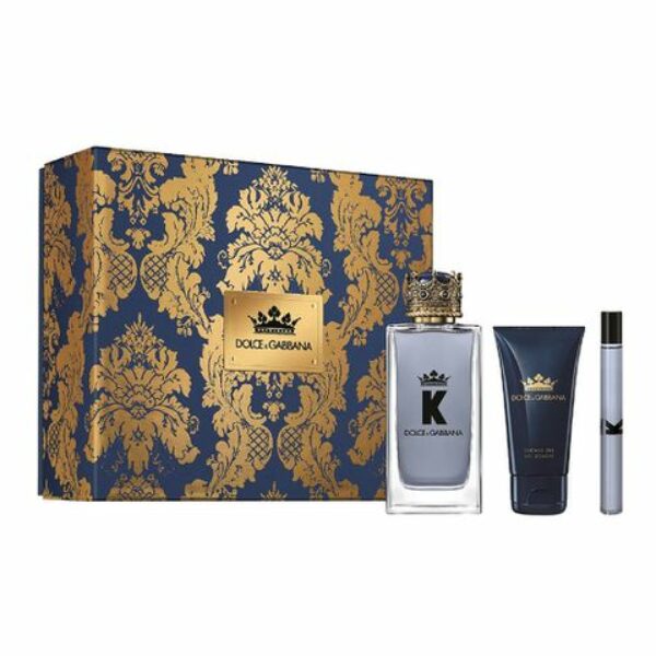 K by Dolce&Gabbana - zestaw - woda toaletowa spray + miniatura wody toaletowej + żel pod prysznic. Dolce&Gabbana K to esencja drzewnego, aromatycznego męskiego zapachu. To zapach silnego, pewnego siebie mężczyzny, który jest charyzmatyczny i dokładnie wie, do czego dąży i osiąga to przemierzając własną ścieżką. Na tą wyjątkową kompozycję składają się nuty energetycznej czerwonej pomarańczy, orzeźwiającej cytryny sycylijskiej i aromat jagód jałowca. Wyczuwalne nuty serca, czyli pikantna papryczka pimento, szałwia muszkatołowa, geranium oraz lawenda dopełniają nuty podstawy. Są nimi zmysłowe drzewo cedrowe, paczula pełna słodyczy i wetyweria, o ziemistej nucie. Oryginalne zamknięcie perfum w kształcie korony, symbolizuje mężczyznę, będącego królem swojego życia. Łączy on miłość do rodziny i życia, celebrując każdy jego dzień niczym król. Pojemność: woda toaletowa spray 100ml + miniatura wody toaletowej 10ml + żel pod prysznic 50ml