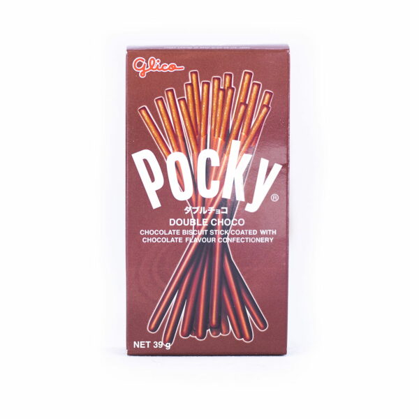 Rozpoznawalne przez wszystkich Pocky to przekąski z dalekiego Wschodu. Przysmak każdego wielbiciela Azjatyckich słodkości. Dzięki praktycznemu opakowaniu można je mieć zawsze przy sobie oraz wygodnie zjeść. Pocky o smaku Double Chocolate Waga Netto 44g Wygodne opakowanie Przechowywać w suchym i chłodnym miejscu Skład: mąka pszenna, cukier, olej roślinny (olej z nasion palmy, olej palmowy, olej rzepakowy), kakao w proszku (9,7%), częściowo utwardzany tłuszcz roślinny (olej palmowy, emulgator (ester glikolu propylenowego kwasu tłuszczowego), przeciwutleniacz (tokoferol)), odtłuszczone mleko w proszku (2,6%), masa kakaowa (1,5%), pełne mleko w proszku (0,7%), sztuczne aromaty, emulgator (lecytyna), sól, drożdże, środek spulchniający (wodorowęglan sodu), regulator kwasowości (wodorotlenek sodu), enzym (papaina). Zawartość kremu o smaku czekoladowym 53%. Może zawierać śladowe ilości: soi, jęczmienia, żyta, owsa, migdałów, orzechów i sezamu.
