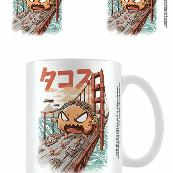 Kubek z nietuzinkowym nadrukiem zaprojektowanym przez Ilustratę, przedstawiającym gigantyczne, potworne taco, Takaiju, terroryzujące postaci przypominające nachosy, a to wszystko na moście zdającym się być słynnym Golden Gate w San Francisco. Produkt sprawdzi się na prezent dla osób, które docenią pomysłowe grafiki, czy znają i kochają projekty Ilustraty. Albo po prostu kochają tacosy. Albo nachosy. Albo komiksy. Albo... właściwie, ten kubek jest idealny dla wszystkich. Dane: Kubek ceramiczny, Pojemność: 315 ml. Uwagi: Należy umyć przed pierwszym użyciem, Nie należy namaczać-nadruk może ulec uszkodzeniu, Nadaje się do mycia w zmywarce (maksymalna temperatura programu to 40°C), lub podgrzewania w mikrofalówce. Wyprodukowane przez Pyramid International The Art Group™.