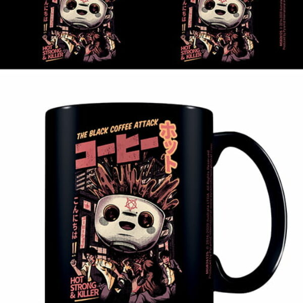 Kubek z nietuzinkowym nadrukiem zaprojektowanym przez Ilustratę, przedstawiającym Czarną Kawę atakującą miasto. Produkt sprawdzi się na prezent dla osób, które docenią pomysłowe grafiki, czy znają i kochają projekty Ilustraty. Albo kawę, najlepiej americano lub espresso. Albo komiksy. Albo... właściwie, ten kubek jest idealny dla wszystkich. Dane: Kubek ceramiczny, Pojemność: 315 ml. Uwagi: Należy umyć przed pierwszym użyciem, Nie należy namaczać-nadruk może ulec uszkodzeniu, Nadaje się do mycia w zmywarce (maksymalna temperatura programu to 40°C), lub podgrzewania w mikrofalówce. Wyprodukowane przez Pyramid International The Art Group™.