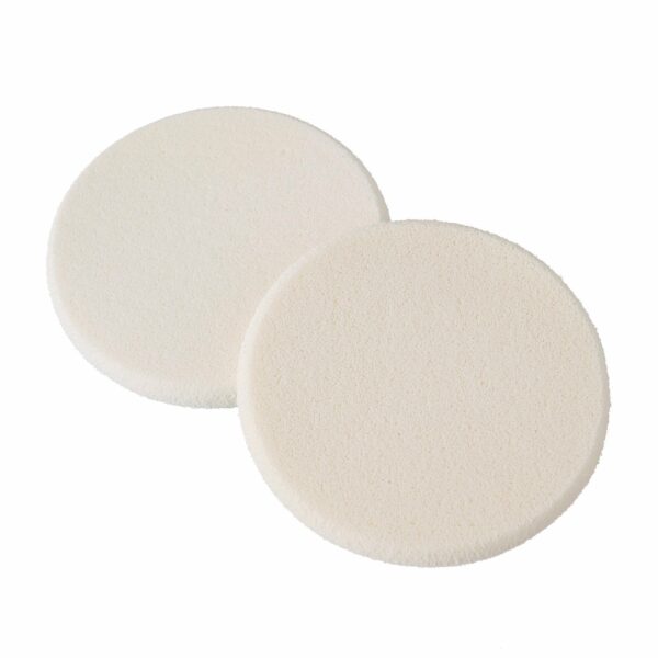 Zestaw 2 płaskich, okrągłych gąbeczek do makijażu.