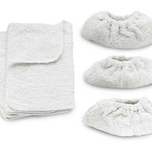 ŚCIERECZKI PODŁOGOWE FROTTEZestaw wysokiej jakości ściereczek zawiera 2 duże ściereczki podłogowe oraz 3 powłoczki do dyszy ręcznej. Ściereczki są mocowane na dużej dyszy podłogowej, a powłoczki nakładane na dyszę ręczną. Wytrzymałe, chłonne, niestrzępiące ściereczki frotte doskonale wchłaniają zabrudzenia. Do czyszczenia podłóg z płytek, kamienia, linoleum oraz PCV.Ściereczki wykonane z bawełny wysokiej jakości: Duża chłonność i absorpcja brudu. Pranie w temperaturze 60°C.Pasuje do urządzeń:SC 1SC 2 SC 3