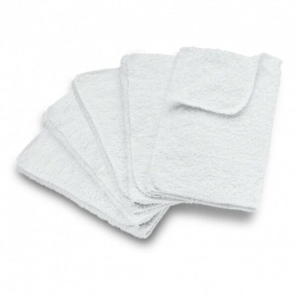 Niestrzępiące, chłonne, wytrzymałe: 5 szerokich, wysokiej jakości bawełnianych ściereczek podłogowych. Przeznaczone do użytku z dyszą podłogową parownic Kärcher. Ściereczki są łatwo mocowane na dyszy podłogowej. Do czyszczenia podłóg z płytek, kamienia naturalnego, linoleum i PCV. Można je również prać w pralce w 60 °C.
