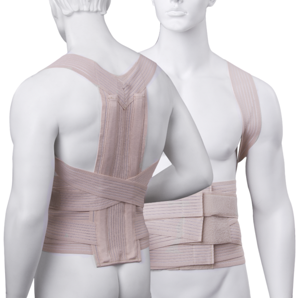 Rozbudowany prostotrzymacz z pasem - ERH-60Wiele osób skarży się na problemy z kręgosłupem. Mogą być one wynikiem złych nawyków, ale też wad wrodzonych. Siedzący tryb życia, który dominuje wśród społeczeństwa nie poprawia sytuacji. Pozycja ta w znacznym stopniu obciąża nasz szkielet, a jeśli dojdzie do tego zła postawa i brak aktywności fizycznej, to negatywne skutki zdrowotne są niemal gwarantowane. Wraz z wiekiem mogą pojawić się też zmiany osteoporotyczne albo stany zapalne, a do tego dochodzi ryzyko urazów, na które jesteśmy narażeni każdego dnia. Deformacje kręgosłupa, objawiające się m.in. nadmierną kifozą piersiową czy lordozą lędźwiową nie tylko wpływają na wygląd naszego ciała, ale też zaburzają pracę całego aparatu ruchu. Na szczęście na rynku dostępne są różnego rodzaju gorsety i ortezy piersiowo-lędźwiowo-krzyżowe, które pozwalają na ochronę kręgosłupa na całej jego długości.Firma ERHEM to polski producent specjalizujący się w projektowaniu i wytwarzaniu wyrobów ortopedycznych. Celem firmy jest aktywizacja osób niepełnosprawnych i pomoc w ich codziennym funkcjonowaniu. Ortezy stanowią również wsparcie dla osób po urazie, gdyż znacznie ułatwiają wykonywanie obowiązków dnia powszedniego podczas rekonwalescencji. W ofercie znajdują się również korektory postawy i pasy lędźwiowe, które pozwalają zadbać nie tylko o poprawną sylwetkę, ale i zdrowie. Bogate zaplecze techniczne pozwala na realizację indywidualnych i skomplikowanych konceptów, zadowalających najbardziej wymagających klientów. Wszystkie produkty wykonywane są z najwyższej jakości materiałów i spełniają wszelkie normy jakości i bezpieczeństwa.ERH-60 to rozbudowany prostotrzymacz, który oprócz taśm na ramiona, posiada również pas taliowy. Pozwala zatem na korygowanie wad postawy, przy jednoczesnym wsparciu kręgosłupa. Ta dwuczęściowa konstrukcja zapewnia lepsze dopasowanie do użytkownika. Część grzbietowa wzmocniona została odpowiednio wyprofilowanymi stalkami ortopedycznymi, które można formować. Dodatkowo posiada możliwość regulacji wysokości. Rozbudowana konstrukcja sprawia, że orteza dobrze odciąża i stabilizuje odcinek piersiowo-lędźwiowo-krzyżowy kręgosłupa, a pasy zapobiegają nadmiernej kifozie piersiowej. Elastyczne taśmy pozwalają również na określenie siły odciągnięcia barków ku tyłowi. Prostotrzymacz wykonany jest z ażurowej, elastycznej tkaniny zapewniającej dobry przepływ powietrza i łączy w sobie wygodę stosowania z dużą skutecznością działania. Zastosowanie:wyrabianie nawyku prawidłowej postawy.plecy okrągłechoroba Scheuermannazmiany osteoporotyczneZZSKZalety ortezy ERH-60:stabilizuje i odciąża dolny odcinek piersiowy oraz lędźwiowo-krzyżowy kręgosłupaskłada się z dwóch części: miękkiego pasa taliowego oraz części grzbietowejczęść grzbietowa wzmocniona jest dwoma wyprofilowanymi metalowymi fiszbinami z możliwością ich indywidualnego formowanialekki, elastyczny materiał zapewnia komfort użytkowania oraz właściwą kompresjętaśmy ściągające korygują ustawienie obręczy barkowej oraz wspomagają działanie wyprostne w odcinku piersiowym kręgosłupa.