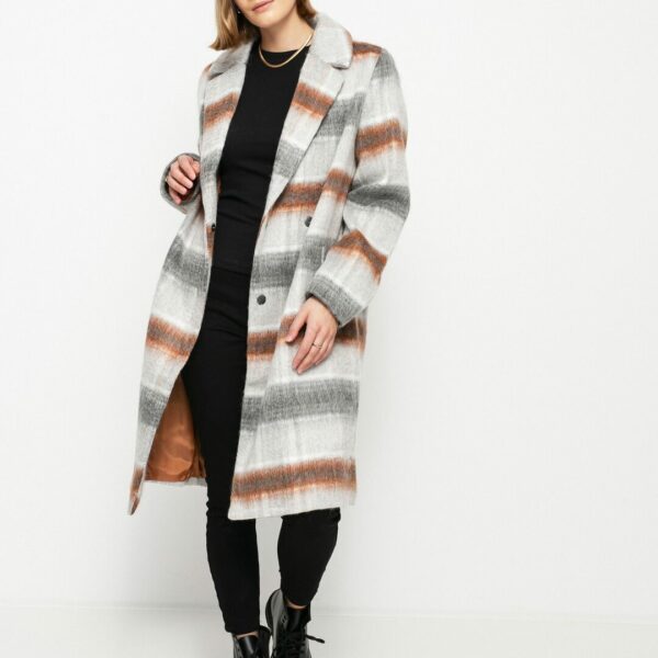 Materiał: 59% poliester, 18% wełna, 12% akryl, 6% wiskoza, 4% nylon, 1% bawełna • Długi, prosty krój • Podszewka z taft na całej powierzchni • Dwa guziki z przodu • Haftowane logo marki na prawy rękawie