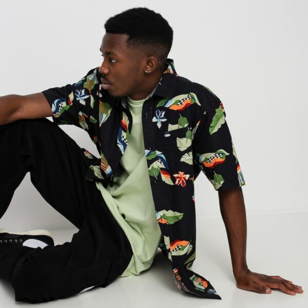Materiał: 100% bawełna • Prosty kołnierzyk • Zapinana na guziki • Krótki rękaw • Na całości nadruk