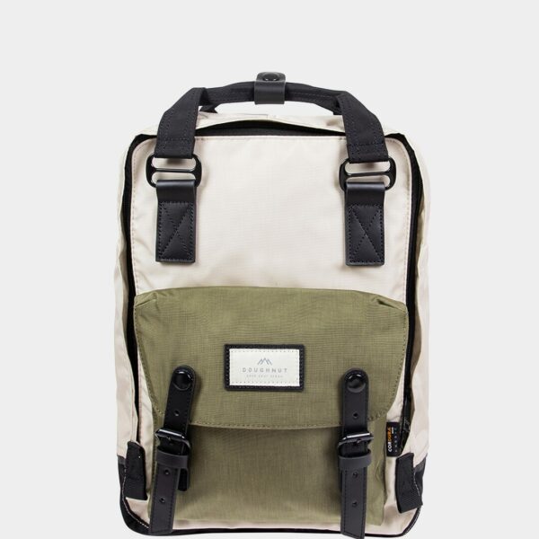 Wymiary: 38 x 28 x 11 cm • Pojemność: 16L • Materiał: wodoodporna tkanina Heavy Twill • Jednokomorowy zapinany na dwukierunkowy zamek • Na przodzie duża kieszeń typu organizer • Wewnętrzna komora na tablet 13" • Wewnętrzna kieszeń zapinana na zamek • Mała kieszeń boczna • Solidne uchwyty do wygodnego noszenia w ręce • Regulowane szelki na ramiona • Łatwy w czyszczeniu materiał • Skórzane detale wyprodukowane metodą roślinną i naszywka z logo Doughnut • Wysoka jakość wykonania i użytych do produkcji materiałów, gwarantują długą żywotność plecaka Macaroon, a eleganckie wykończenie i kolorystyka, zapewniają uniwersalny styl