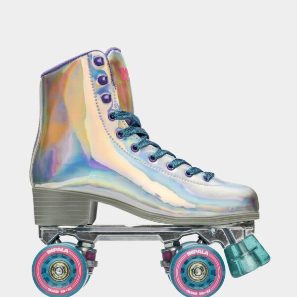 Design produktów Impala charakteryzuje nostalgiczne nawiązanie do retro stylu lat 70-tych, 80-tych i 90-tych • Impalaskate to ogólnoświatowa społeczność́ dla tych, którzy kochają̨ jeździć́ na wrotkach oraz deskorolce- przy plaży, po lokalnych ulicach czy w skateparkach • Cholewka, pięta i podeszwa zewnętrzna wykonane z wytrzymałego materiału PCV • Podstawa: Aluminium • Hamulec: Poliuretan • Kółka: 58 mm o twardości 82A, wykonane z uretanu i nylonu • Łożyska: ABEC 7 • Oddychająca, miękka wyściółka zapewniająca komfort nawet podczas długi sesji • Klasyczny system sznurowania zapewnia dobre dopasowanie • Produkt wegański, zatwierdzony międzynarodowym atestem PETA