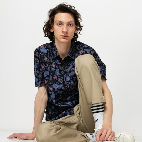 Materiał: 55% bawełna, 45% wiskoza • Zapinana na guziki • Krótkie rękawy • Mała kieszeń naszyta na lewej piersi • Na całości nadruk
