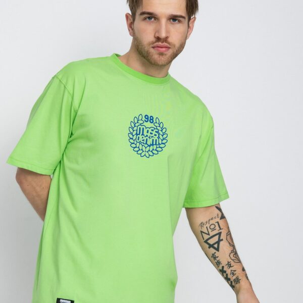 Materiał: 100% bawełna • Okrągły dekolt • Dekolt obszyty wygodnym ściągaczem • Krótkie rękawy • Nadruk z przodu • Żakardowa naszywka MassDnm