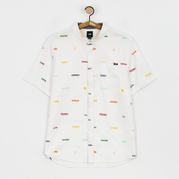 Materiał: 100% bawełna • Prosty kołnierzyk • Na lewej piersi kieszonka • Zapinana na guziki • Krótki rękaw • Zaokrąglony dół • Na całości drobne nadruki