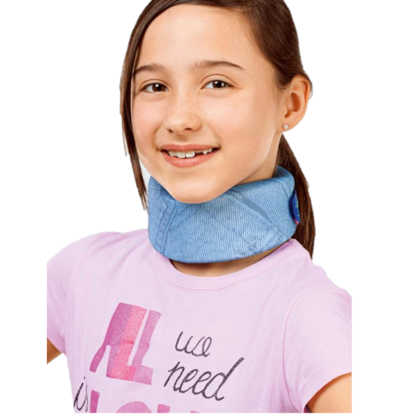 Dziecięcy kołnierz ortopedyczny stabilizujący odcinek szyjny kręgosłupa z funkcją rozgrzewania - wygoda noszenia, modny wzór (MEDI collar soft kidz)