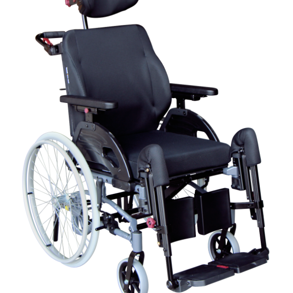Zaawansowany wózek inwalidzki specjalny z funkcją pochylenia - wąska konstrukcja, komfortowe poduszki siedziska i oparcia Netti UNO, duży zakres regul